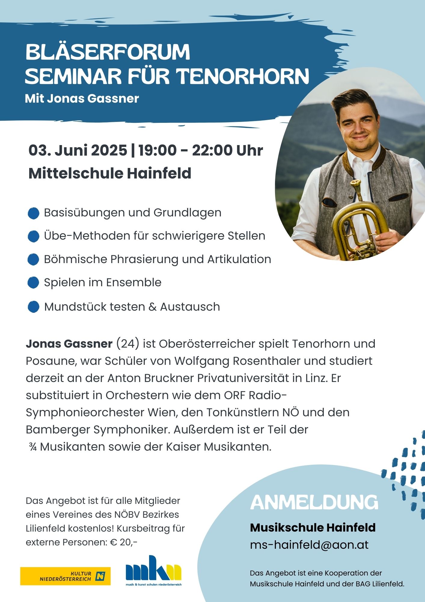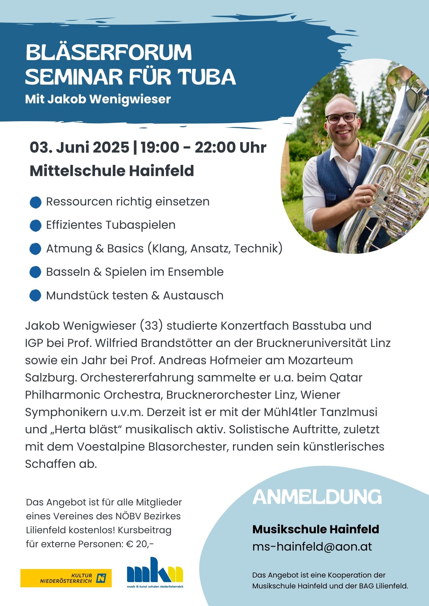 3. Juni 2025 je ein Seminar für Tenorhorn und Tuba.